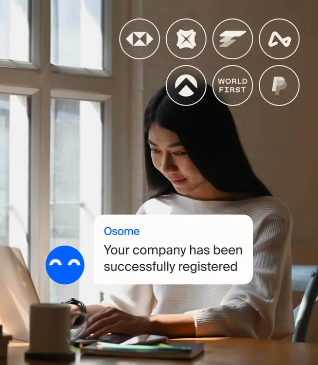 Let Osome handle your company registration admin online, from bank accounts to compliance. No paperwork, fast registration, and expert guidance throughout.